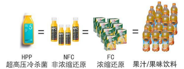 濃縮還原果汁(FC),是指在濃縮果汁中加入果汁濃縮時失去的天然水分等量的水后,得到的制品。這一技術是傳統的果汁廠商經過二十多年的經驗積累發展出來的。大家在超市可以經常看到,有很多瓶裝果汁都會標注“100% 純果汁”的標簽,其中很多就是經過濃縮和還原的加工后才進入市場的。