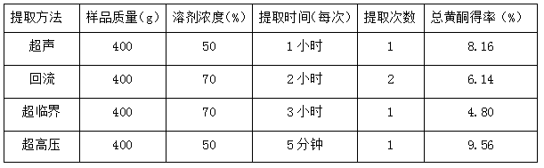 表1:不同方法提取淫羊藿總黃酮的比較