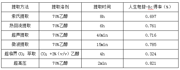 表2:不同方法提取人參皂苷的比較