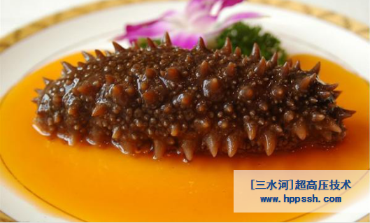 采用超高壓加工技術完全可以解決這個問題。將清除內臟的海參,放入密閉的容器中,在3000-6000個大氣壓的壓力下加工,不但將導致海參快速溶化的自溶酶滅活,還可以將細菌、病毒滅活,延長了保鮮期,而且充分保護有顯著藥理作用的蛋白質、皂苷、多糖不被破壞,解決了海參加工的千年難題。